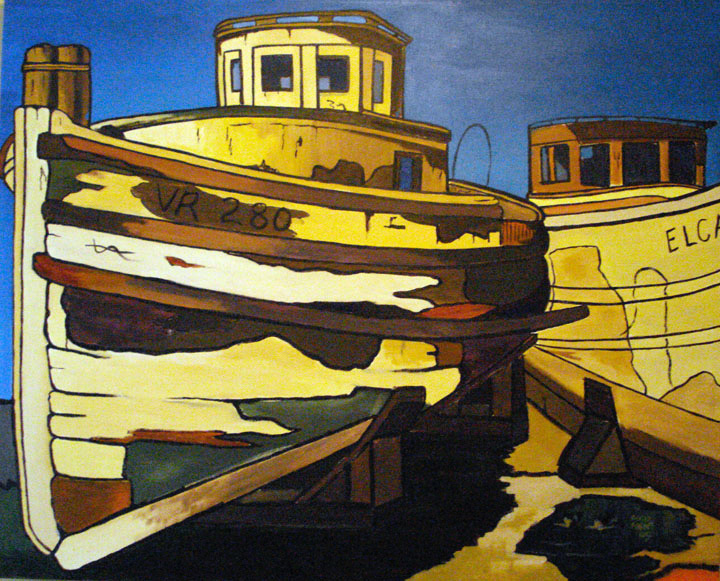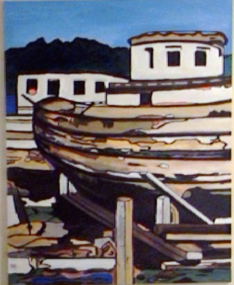 These two last images of derelict boats (the pencil drawing and the acrylic painting) came from some photographs I took on River Road in Delta, BC, I can’t remember exactly when, but it would have been in the 1970s sometime. Over the years I did three more acrylic paintings incorporating two boats from the photographs I took in the 70s, the Elcay and the VR 280: