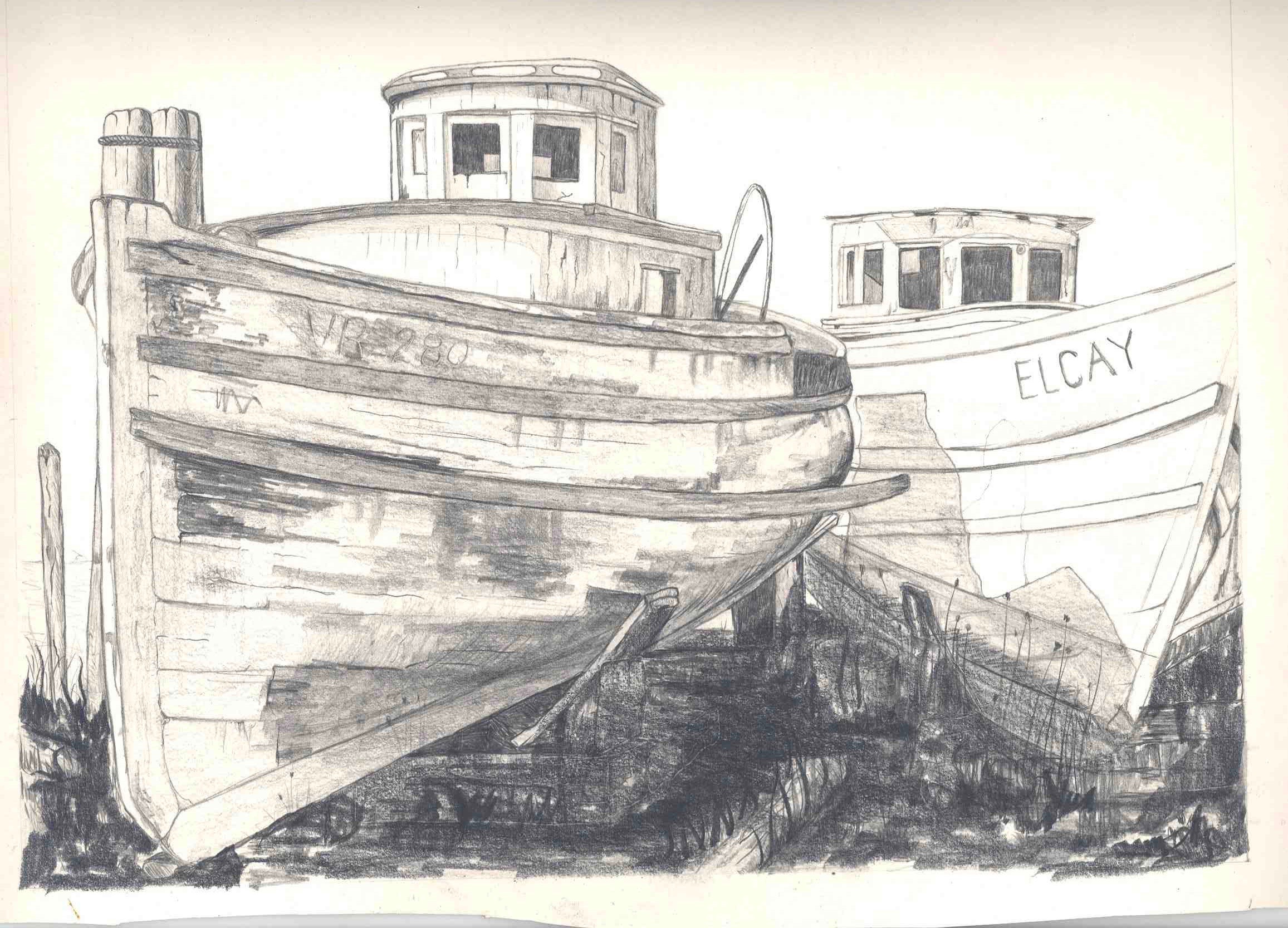 I also did a pencil drawing of the same two boats in the mid 90: